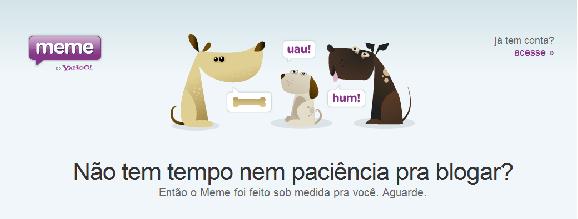 “Não tem tempo nem paciência pra blogar? Então o Meme foi feito sob medida pra você. Aguarde.”